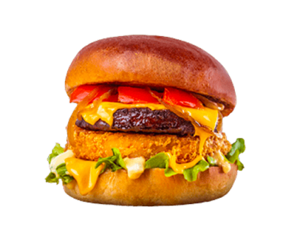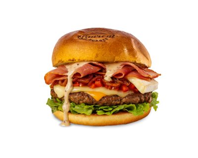 Salade, Tomates, Oignons, Steak haché façon bouchère, Double Cheddar, Raclette,...