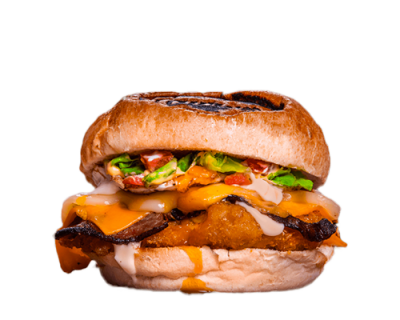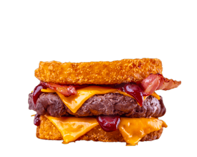 Oignons frits, aiguillettes de poulet, triple cheddar, triple bacon