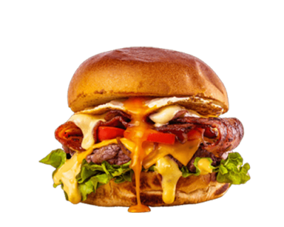 Salade, Tomates, Oignons, poulet, Double Cheddar, Raclette, Oeuf, Bacon,