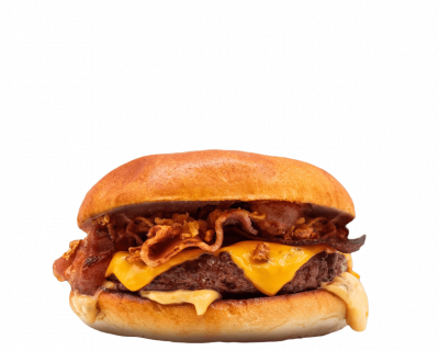 Pain bun, steack haché façon bouchère, oignons frit, 5x cheddar,...