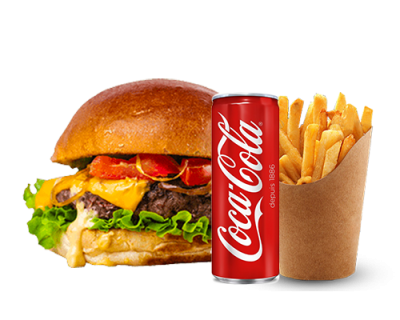 Salade, Tomates, Oignons fondu, Cheddar, Steak Haché façon bouchère. Servi...