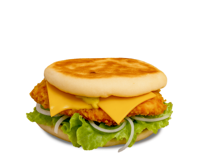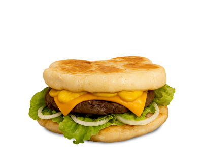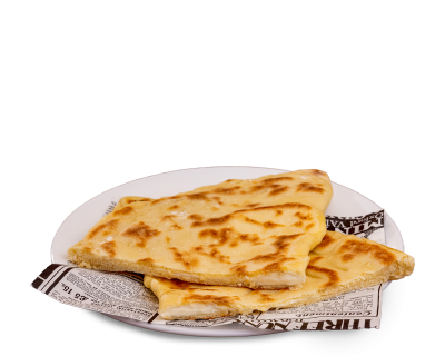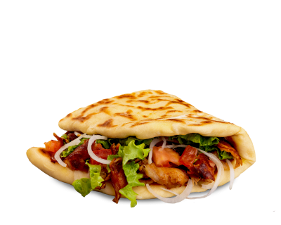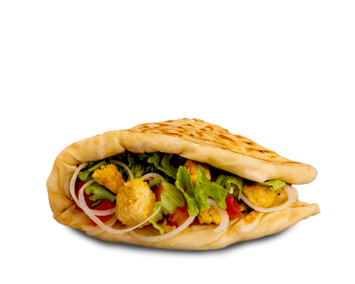 Cheese naan garni de salade, tomates, oignons, émincés de viande...