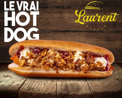 Pain brioché, saucisse knacki, ketchup, mayo, oignons frits