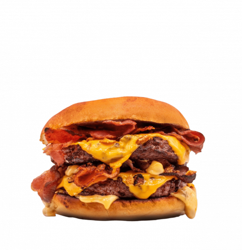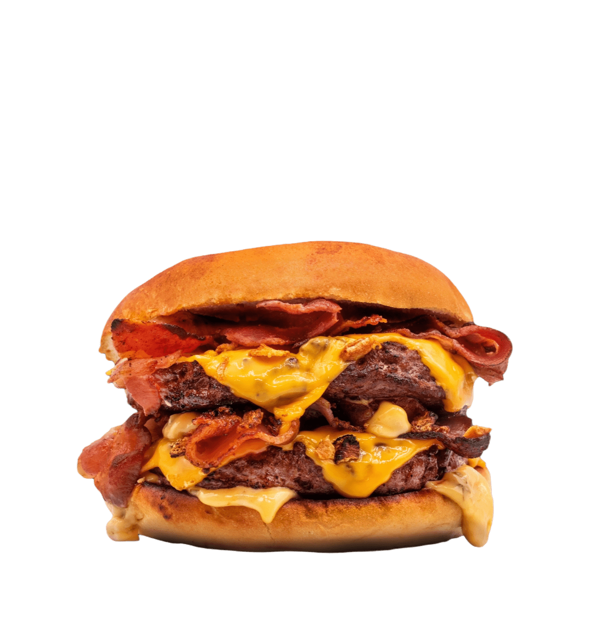 Pain bun, steack haché façon bouchère, oignons frit, 5x cheddar, 5x bacon