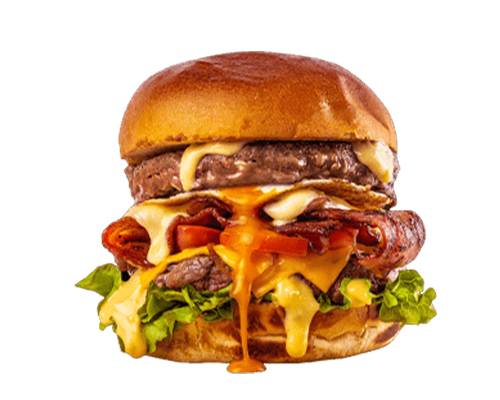 Salade, Tomate, Oignons, Double Steak façon bouchère, 4x Cheddar , Double raclette, oeuf, double bacon
